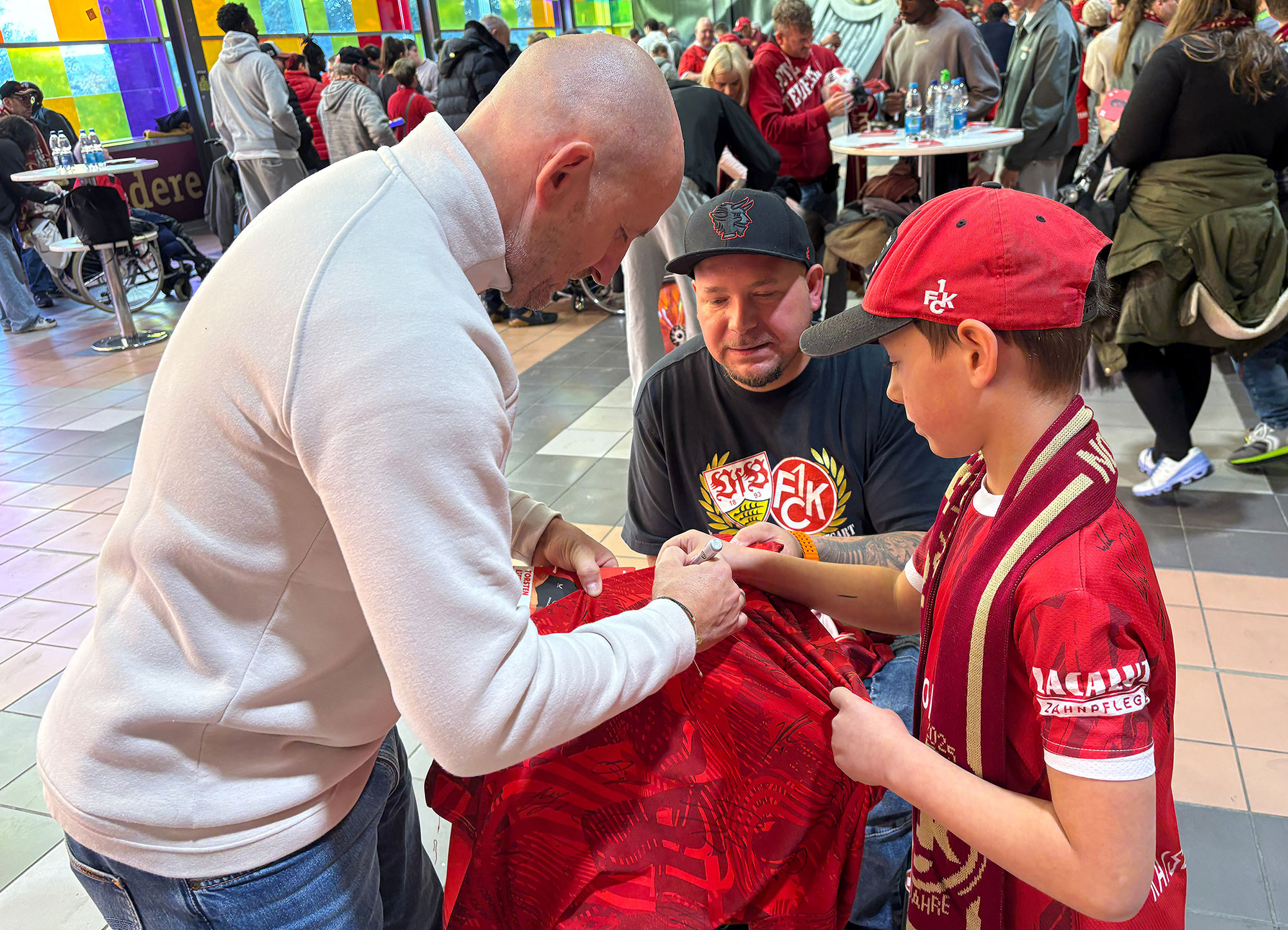 Darum wird auch dieses außerordentlich spezielle Meeting von den Organisatoren, Spielern und vor allem von den FCK-Fans mit Handicap als etwas ganz Besonderes geliebt. Was die Gemeinschaft und die Wertschätzung aller Beteiligten in einem vorbildlichen Miteinander unterstreicht. Ein Alleinstellungsmerkmal, das diese Autogrammstunde in ihrer unvergleichlichen Art wohl einzigartig im deutschen Fußball macht. Die kontinuierlich gewachsene Weiterentwicklung seit 1997 konnte allerdings dem grundsätzlichen, sehr speziellen Konzept nichts anhaben. Immer noch liegt die absolute Besonderheit auf uneingeschränkter Barrierefreiheit. Wie eh und je ohne Schlange stehen, trennenden Absperrungen oder unüberwindbaren Hindernissen zwischen Spielern und Fans.